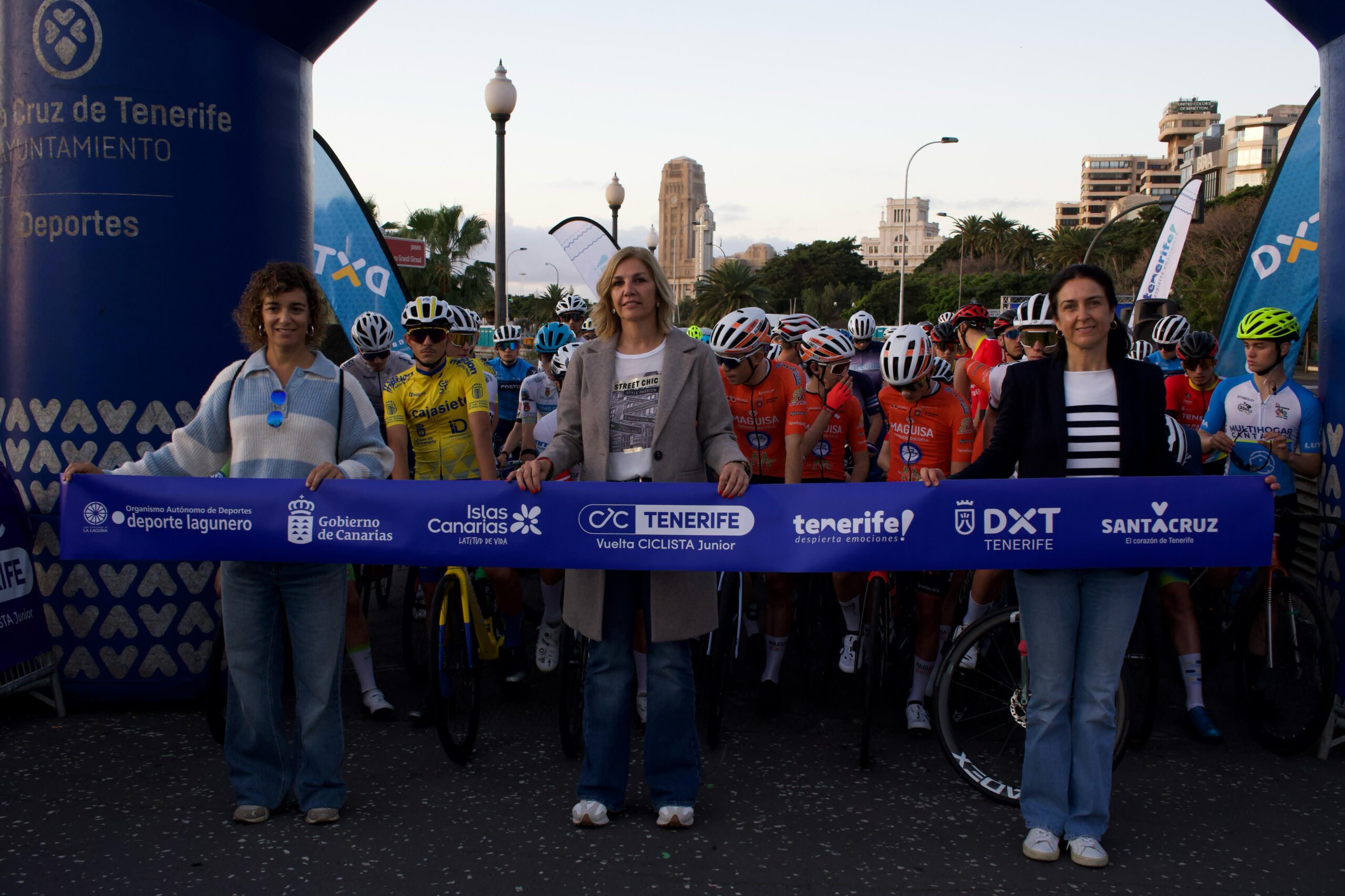 Como en el día de ayer, el protocolo de salida lo formalizaron responsables del fuerte apoyo institucional que la carrera ha recibido, representados hoy por Yolanda Moliné, Consejera Delegada de Deportes del Cabildo Insular de Tenerife; Alicia Cebrián, Concejala Delegada de Deportes del Ayuntamiento de Santa Cruz de Tenerife y la Directora de Volaví Canarias SL, Noelia Pérez, empresa organizadora de esta exitosa I Vuelta Ciclista a Canarias – Tenerife Júnior 2025.